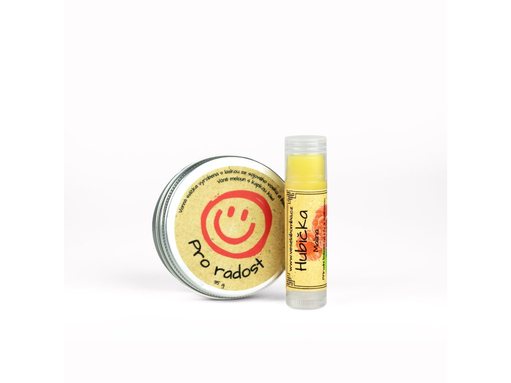 Sójová svíčka s vůní sladkého melounu a balzám na rty Hubička malina - Dárkově baleno. Malé a roztomilé balení, vhodné jako dárek s vtipnou samolepkou na víčku :) potěší jistě každou ženu.