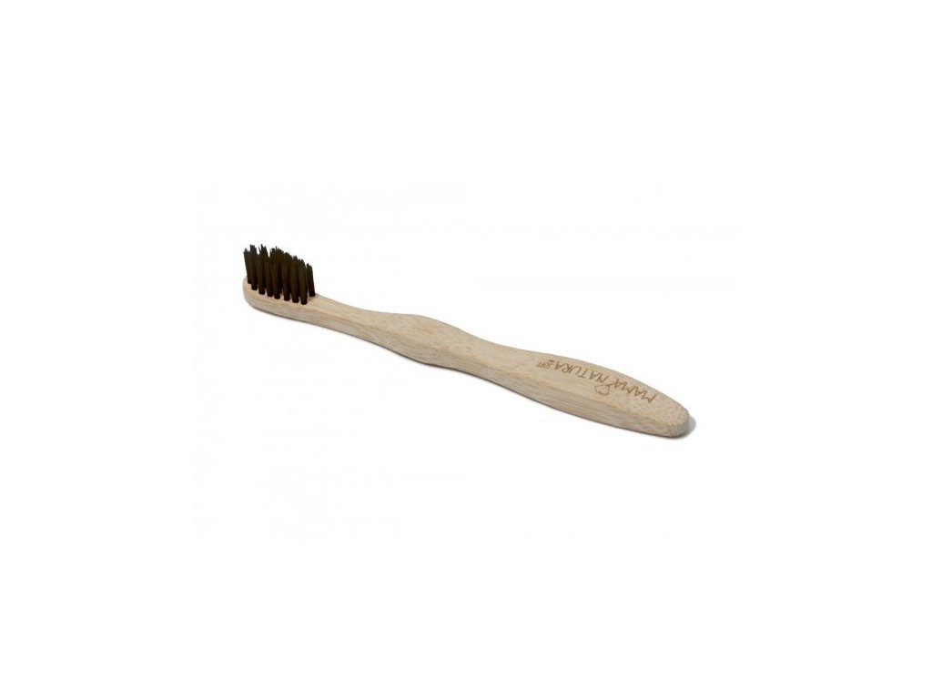 Rukojeť ekologického kartáčku Mama Natura je vyrobena z broušeného bambusu a není nijak impregnována nebo lakována. Štětinky jsou směsí rostlinného plastu z ricinového oleje a nylonu, obohacené aktivním uhlím. Obsahují podíl rostlinného materiálu, ale stále nejsou 100% rozložitelné.