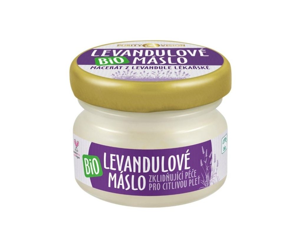 Bio Levandulové máslo je vyrobeno tradiční metodou pozvolného macerování z levandule lékařské (lavandula angustifolia), která roste v růžovém údolí bulharských hor. Sběr drobných květů začíná již v brzkých ranních hodinách, kdy se v květu rostlin tvoří největší množství esenciálních olejů. Sesbírané květy jsou ihned přepraveny ke zpracování, čímž je zaručena maximální svěžest a čerstvost. Při zpracování jsou snítky levandulových květů na několik týdnů naloženy do kvalitního Bio Fair Trade Bambuckého másla PURITY VISION®. Do macerátu tak v nezmenšené míře přechází jejich zklidňující síla a intenzivní vůně. Vychutnejte si něžnou péči, kterou stvořila sama příroda.