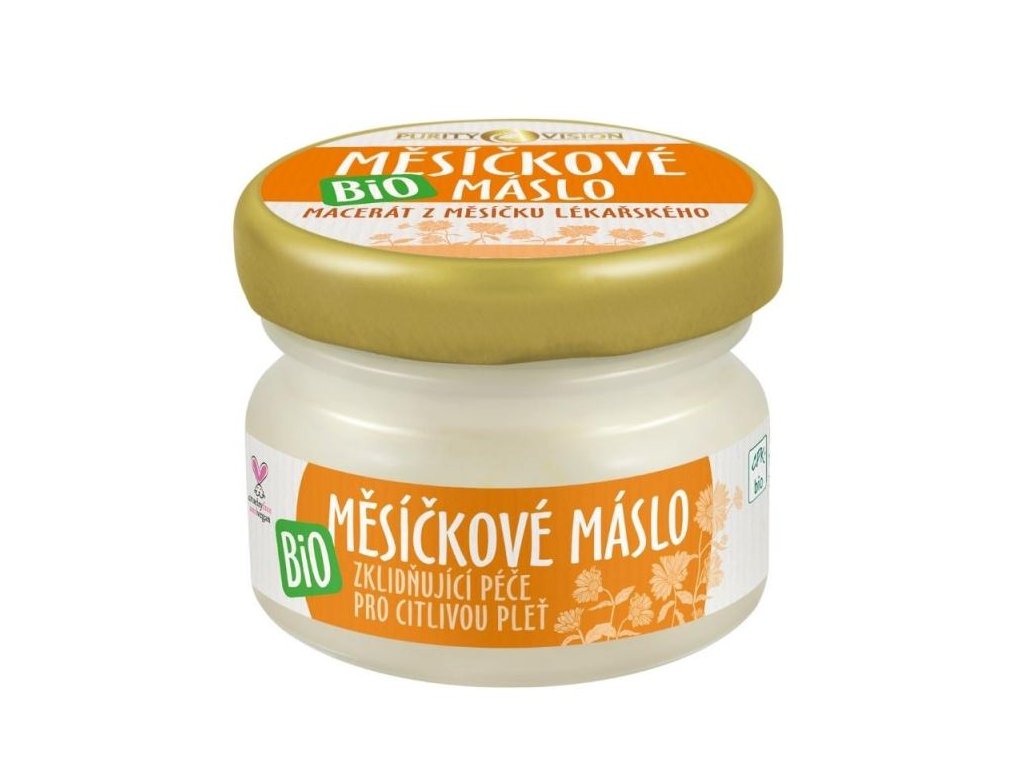 Bio Měsíčkové máslo je vyrobeno tradiční metodou pozvolného macerování z měsíčku lékařského. Při maceraci jsou květy měsíčku (calendula officinalis) na několik týdnů naloženy do kvalitního Bio Fair Trade Bambuckého másla PURITY VISION®. Do macerátu během této doby proniká jejich zklidňující síla. Jelikož měsíček lékařský nemá nijak výrazné aroma, výsledný produkt voní po bambuckém másle, což ocení zejména citlivé osoby a příznivci nevýrazných vůní. Hýčkejte se něžnou péči pocházející z panensky čisté přírody.