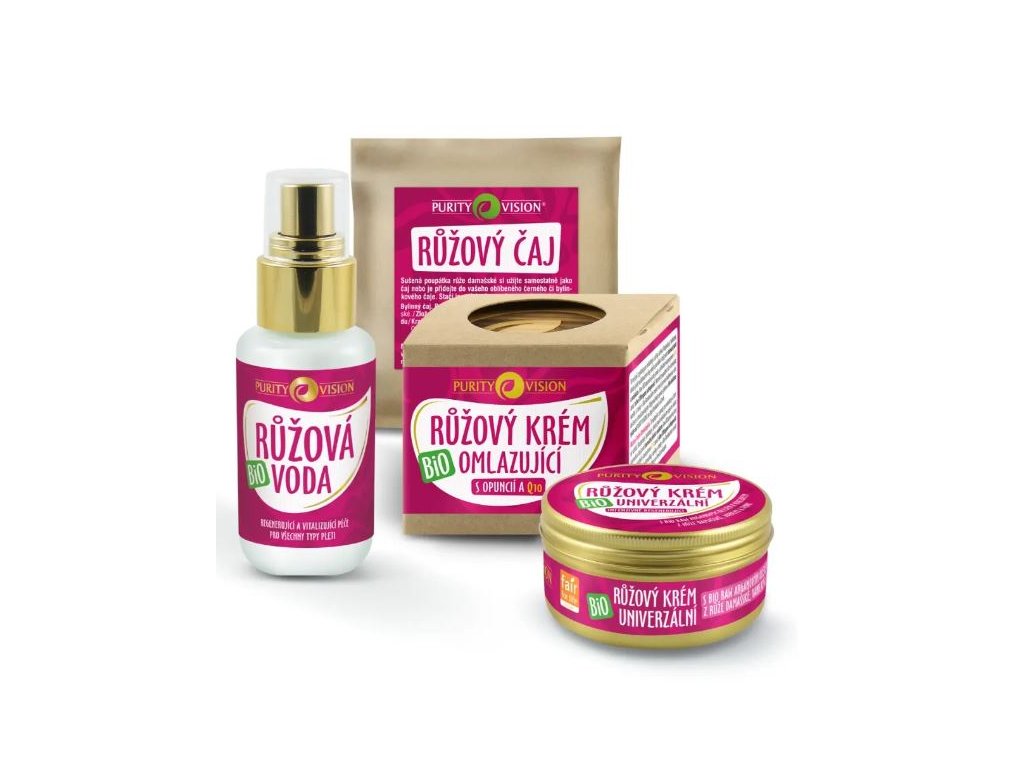 Královna květin, tak růži jíž před staletími nazvala antická básnířka Sapfó. Podle jedné indické básně se nejkrásnější žena světa Lakšmí zrodila z rozvíjejícího růžového poupěte a stala se bohyní krásy. Avšak růže není jen symbolem lásky a krásy, pro své blahodárné účinky je využívána v kosmetice již od starověku. Díky naší růžové sadě můžete vyzkoušet ty nejlepší produkty od PURITY VISION®, které vaši pleť vyživí a zahalí do omamné vůně.