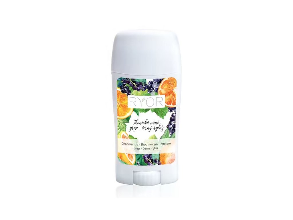 Deodorant ze speciální limitované edice k 30. výročí založení české kosmetiky Ryor. Obsahuje svěží, tradiční vůni rybíz-oranž (grep), která dala název kosmetice Ryor.
