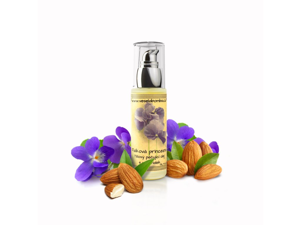 Tělový olej Fialková princezna je vhodný pro všechny typy pokožky, i podrážděné nebo ekzematické. Neobsahuje žádné konzervanty ani umělá barviva.