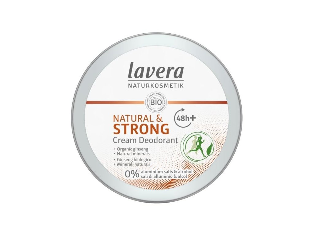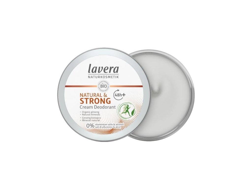Vyzkoušejte inovativní způsob použití deodorantu ve formě krému. Lehká konzistence se okamžitě vstřebává a nezanechává skvrny na oblečení. Šetrné složení neobsahuje aluminiové soli ani alkohol. Bio Bambucké máslo dokonce pečuje o citlivou oblast podpaží a zklidňuje drobná podráždění například po holení. Krémový deodorant lavera Strong vám poskytne až 48hodinový pocit svěžesti, stejně jako deodorant ve spreji či v roll-onu. Extra silná koncentrace účinných látek vás ochrání před nepříjemnými projevy pocení i během ranního běhu či návštěvě fitcentra. Obsažené přírodní minerály jako Soda bikarbona minimalizují pocení a jeho nežádoucí projevy. Výtažky z Bio Ženšenu harmonizují pokožku a jeho energická vůně dodává sílu pro sportovní výkony a nástrahy běžného dne. Ideální balení na cestování, můžete si ho vzít s sebou i na palubu letadla.