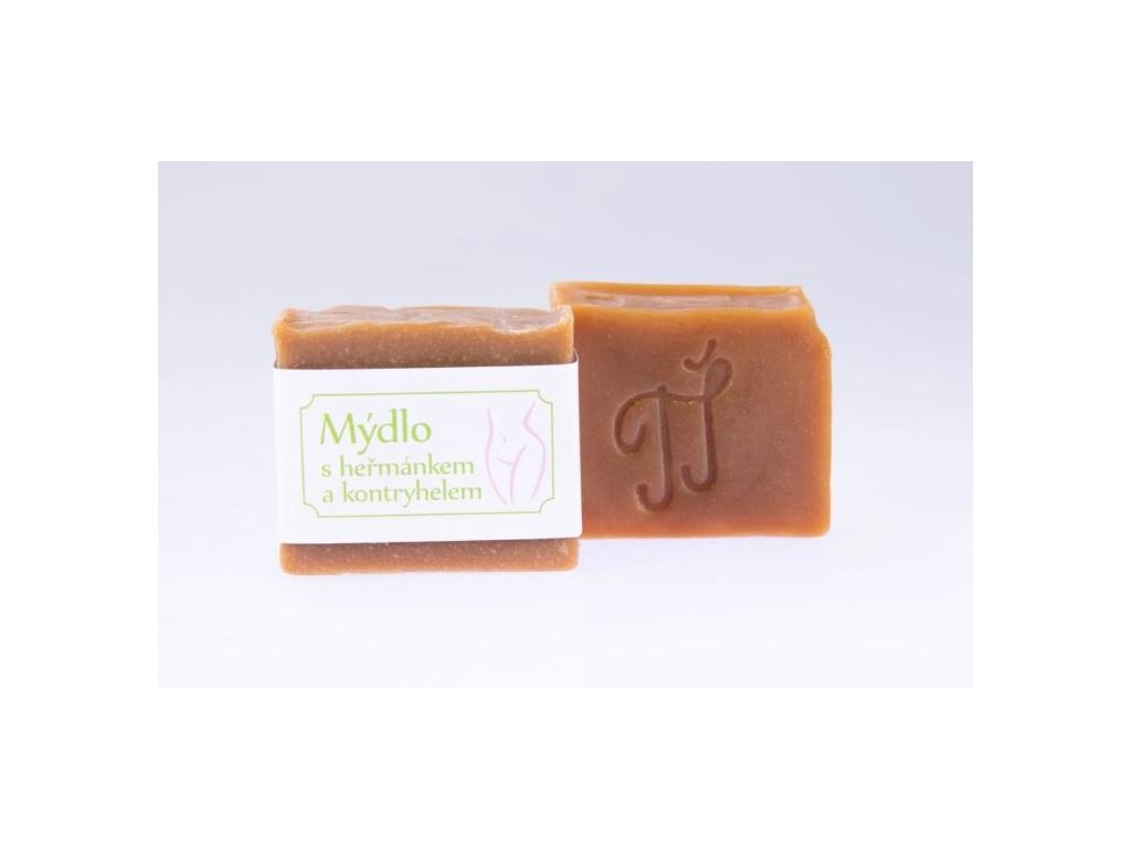 Kombinace heřmánku, kontryhele, sušeného jogurtu a tea tree je vhodná pro hygienu intimních partií. Mýdlo je velmi jemné a s antibakteriálním účinkem.