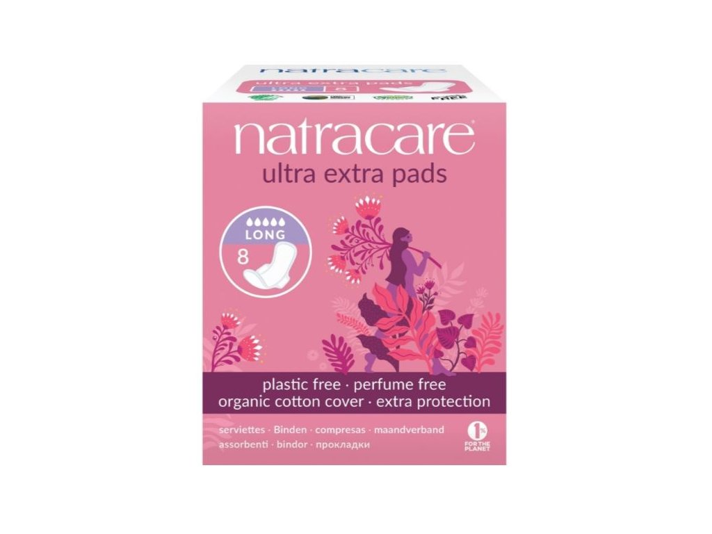 NATRACARE Menstruační vložky Ultra Extra LONG s křidélky 8 ks
