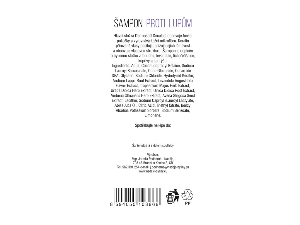 Šampon je obohacen o bylinné extrakty z lopuchu, levandule, lichořeřišnice, kopřivy a sporýše, které dodávají vlasům vitalitu a energii. Lopuch je známý svými čistícími vlastnostmi a podporuje růst vlasů. Levandule má zklidňující účinky, které pomáhají zmírnit podráždění pokožky hlavy. Lichořeřišnice je bohatá na vitamíny a minerály, které posilují vlasové kořínky. Kopřiva napomáhá bojovat proti lupům a vypadávání vlasů, zatímco sporýš dodává vlasům lesk a pružnost.