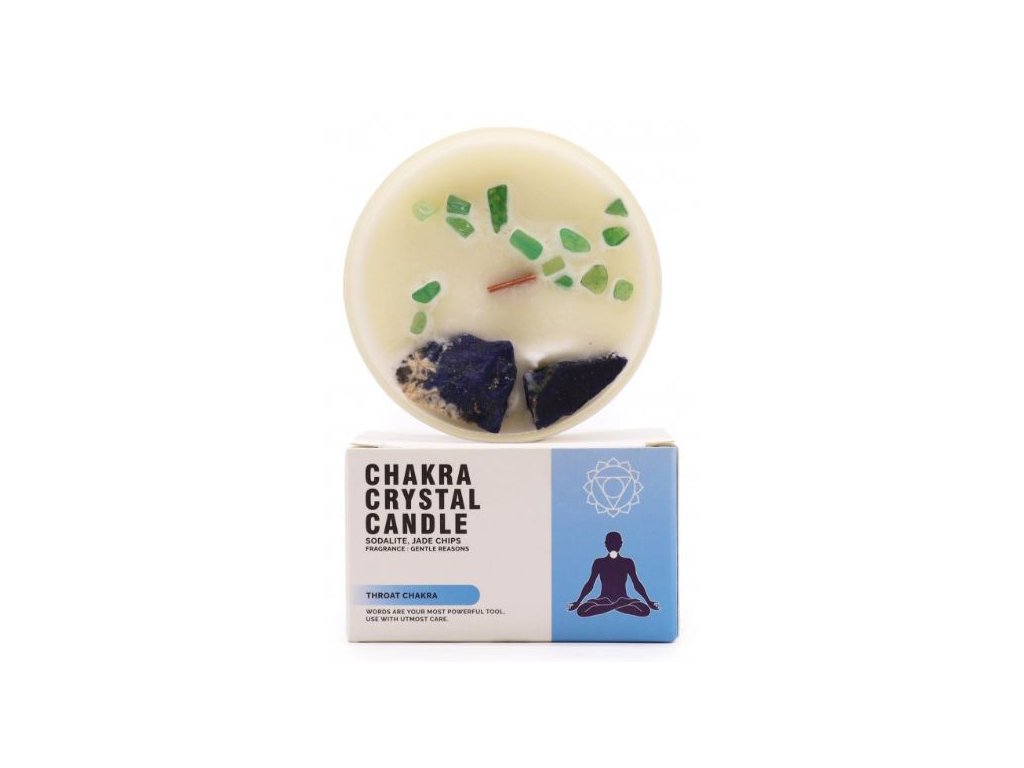 Najděte svůj hlas a vylepšete komunikaci s naší krystalovou svíčkou pro krční čakru. Tato svíčka, vyrobená z kousků sodalitu a nefritu, rezonuje s esencí krční čakry. Vůně "Gentle Reasons" podporuje vědomý a jasný výraz.