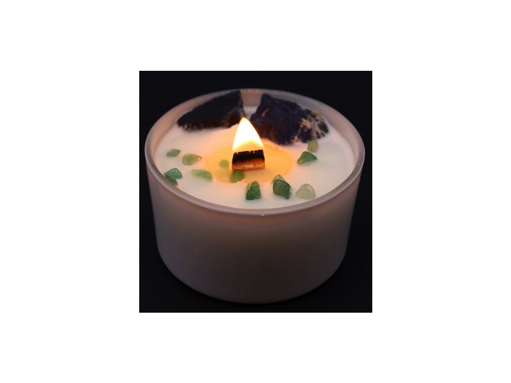 Když zapálíte svíčku, budete cítit léčivou energii krystalů a uklidňující vůni speciálně namíchaného aroma. Po spálení této svíčky lze nádobu znovu použít a můžete vyčistit a ponechat krystaly.