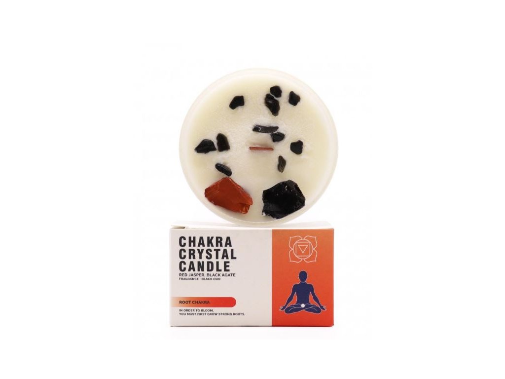 Tato svíčka, vytvořena s uzemňující energií červeného jaspisu a ochrannou silou černého achátu, ztělesňuje esenci kořenové čakry. Zklidňující vůně Black Oud dodává Vašim meditačním a léčebným postupům zemitý rozměr.