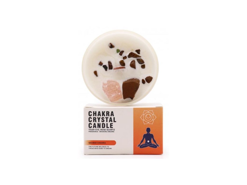 Zapalte svou tvůrčí a vášnivou energii s naší krystalovou svíčkou sakrální čakry. Vyrobeno z dynamické kombinace tygřího oka a růženínu, jejichž energie rezonuje s esencí sakrální čakry. Vůně „Invoking Dreams“ vás obklopuje a inspiruje vaše nejvnitřnější touhy.