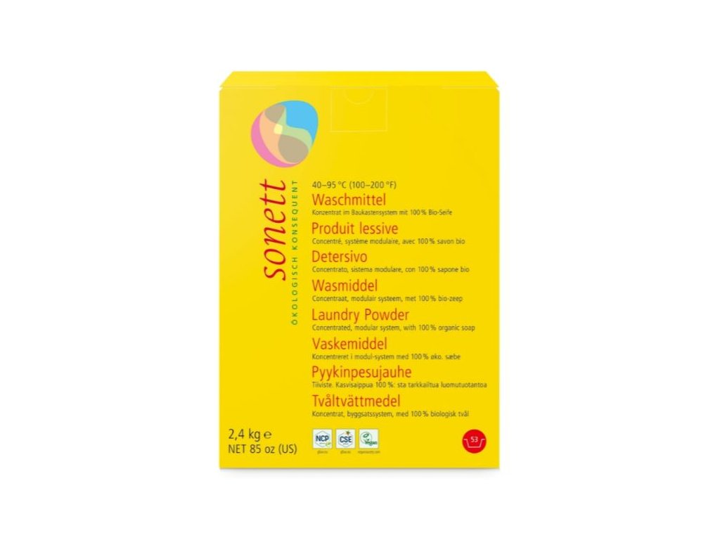 Prací prostředek SONETT obsahuje jako hlavní účinnou látku mýdlo které se vyrábí z různých rostlinných olejů, palmového, řepkového, kokosového a olivového, a to vařením s louhem. Oleje pocházejí zčásti z ekologické resp. bio-dynamické produkce. Mýdlo jako aktivní mycí látka v sobě jedinečným způsobem spojuje všechny, pro proces praní nezbytné, vlastnosti smáčení nečistoty, jejího rozpouštění a pohlcení. Soda se vyrábí přeměnou vápna pomocí kuchyňské soli. ORTOKŘEMIČITAN vzniká roztavením křemičitého písku a sody. Soda a ortokřemičitan posilují svou zásaditostí mycí louh a podporují uvolňování zejména mastných látek. Zeolit A a vrstevnatý křemičitan mají jako výchozí surovinu křemičité horniny. Vedle své vlastnosti poutat vápník ve vodě poutají tyto složky zároveň i organické látky rozpuštěné v prací vodě a barevné pigmenty a zabraňují jejich usazování na prádle. Derivát kokosového oleje podporuje mýdlo v jeho funkci rozpouštění tuků.