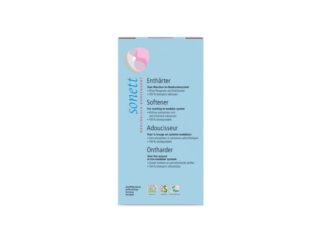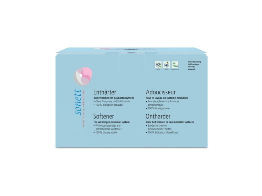 Odstraňte obsah/obal podle místních předpisů. I u změkčovadla, stejně jako u pracího prostředku, se SONETT omezuje na nutné a akceptovatelné složky a zříká se použití plnidel, fosfátů a jiných změkčovadel z ropných produktů jako NTA (nitri-lotriacetát) a EDTA (kyselina etylén-diamin-tetraoctová).