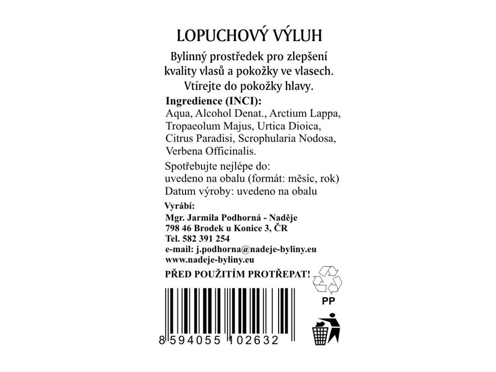 Bylinný prostředek pro zlepšení kvality vlasů a pokožky ve vlasech. Vtírejte do pokožky hlavy.